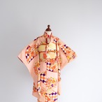 橘と桔梗のお花の色合いが可愛いアンティークのお着物です。